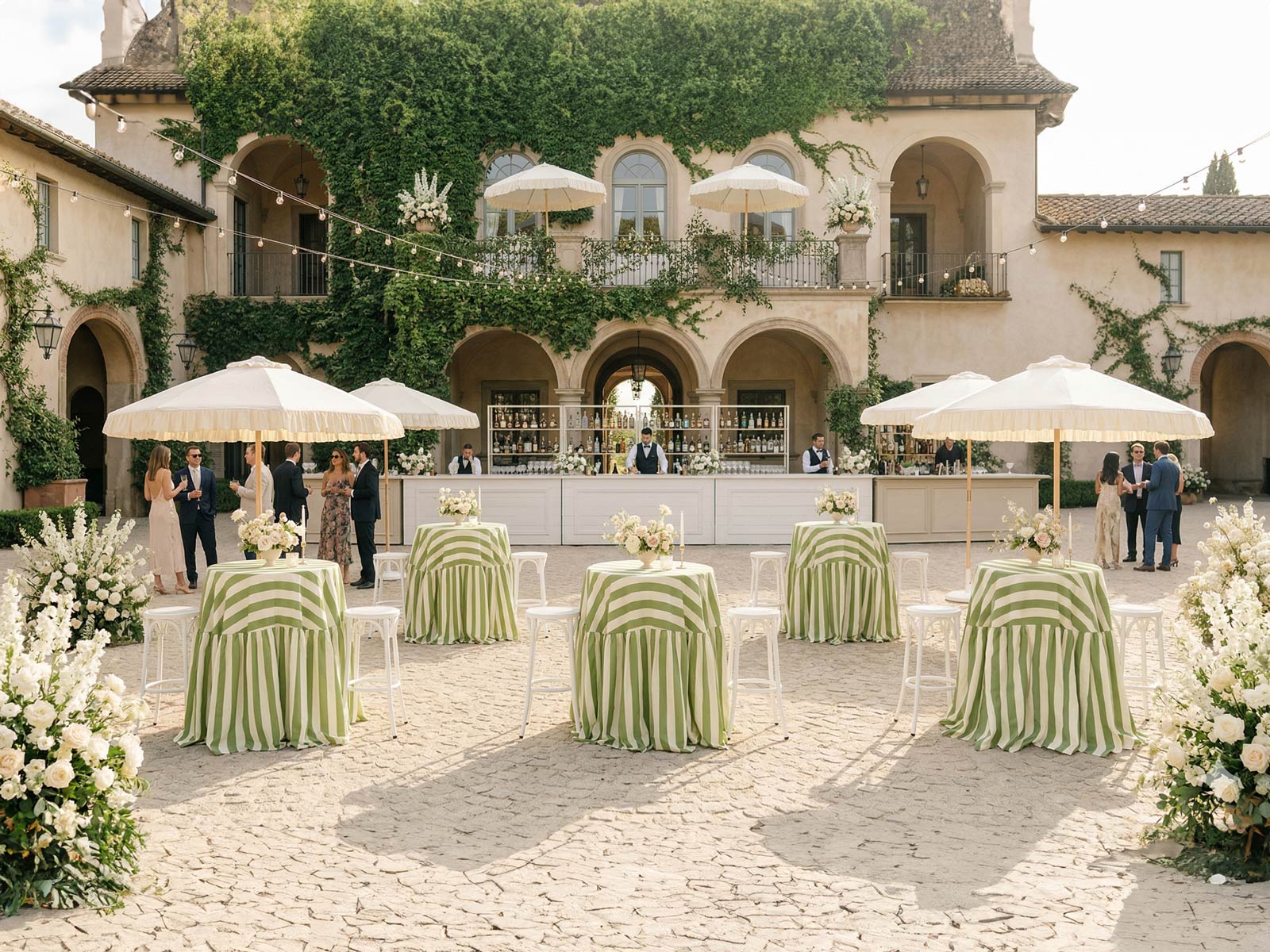 La primera toma de contacto con la celebración, donde se empiezan a degustar las delicias preparadas por el cátering en un entorno decorado y amueblado para la ocasión. Barras de madera y forja, mesas altas, taburetes, sillas, parasoles, sombrillas de palma, estilo moderno, vintage, industrial, tropical, y todos los estilos de moda de la actualidad.