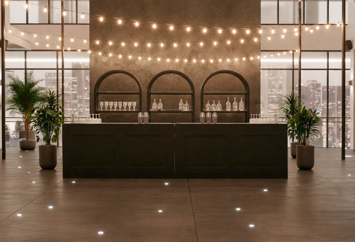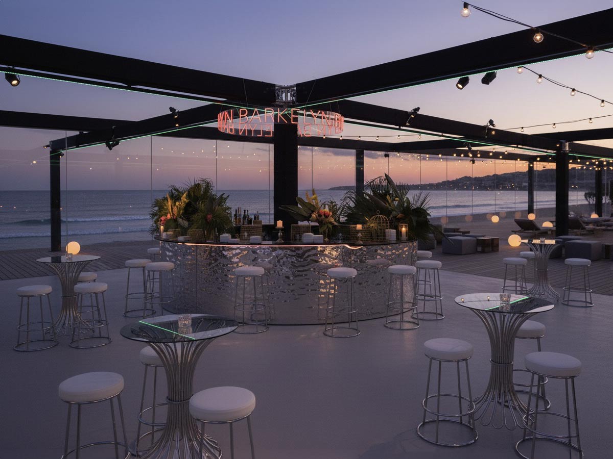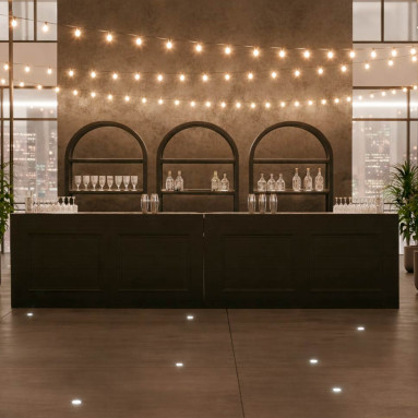 Alquiler de barras de bar redondas, rectangulares, cuadradas, modulares, con techo, con luces y lámparas, de diversos materiales y colores, ideales para decorar en zonas de aperitivo y bar o zonas disco en todo tipo de eventos, bodas y celebraciones.